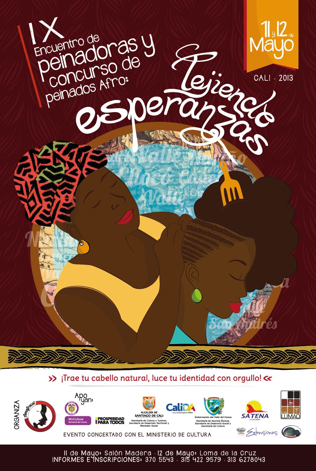 - Primer Encuentro de peinadoras y concurso de peinados afro "Tejiendo Esperanzas" Cali, Mayo, Centro Cultural de Cali
